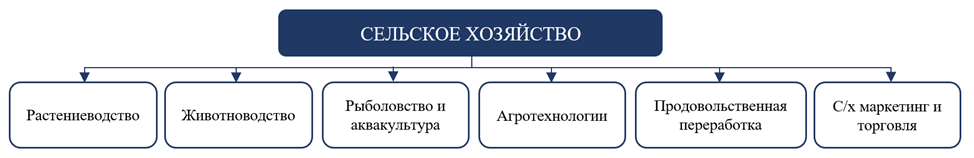 На рисунке 1 изображены составляющие сельскохозяйственной отрасли.