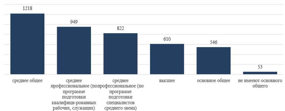 По состоянию на 2021 год 29 % занятых в сельскохозяйственной отрасли имеют среднее общее образование. В то время как высшее образование имеют всего 14,5 %. Сравнительная характеристика представлена на рисунке 2.