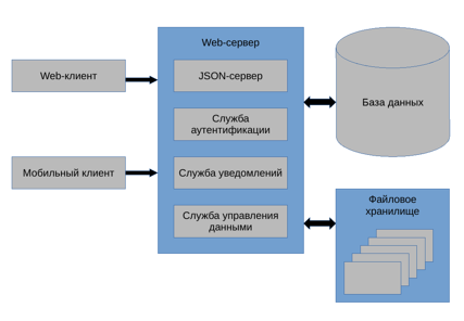 - Web-сервер, на котором будет реализована основная логика коммуникации.