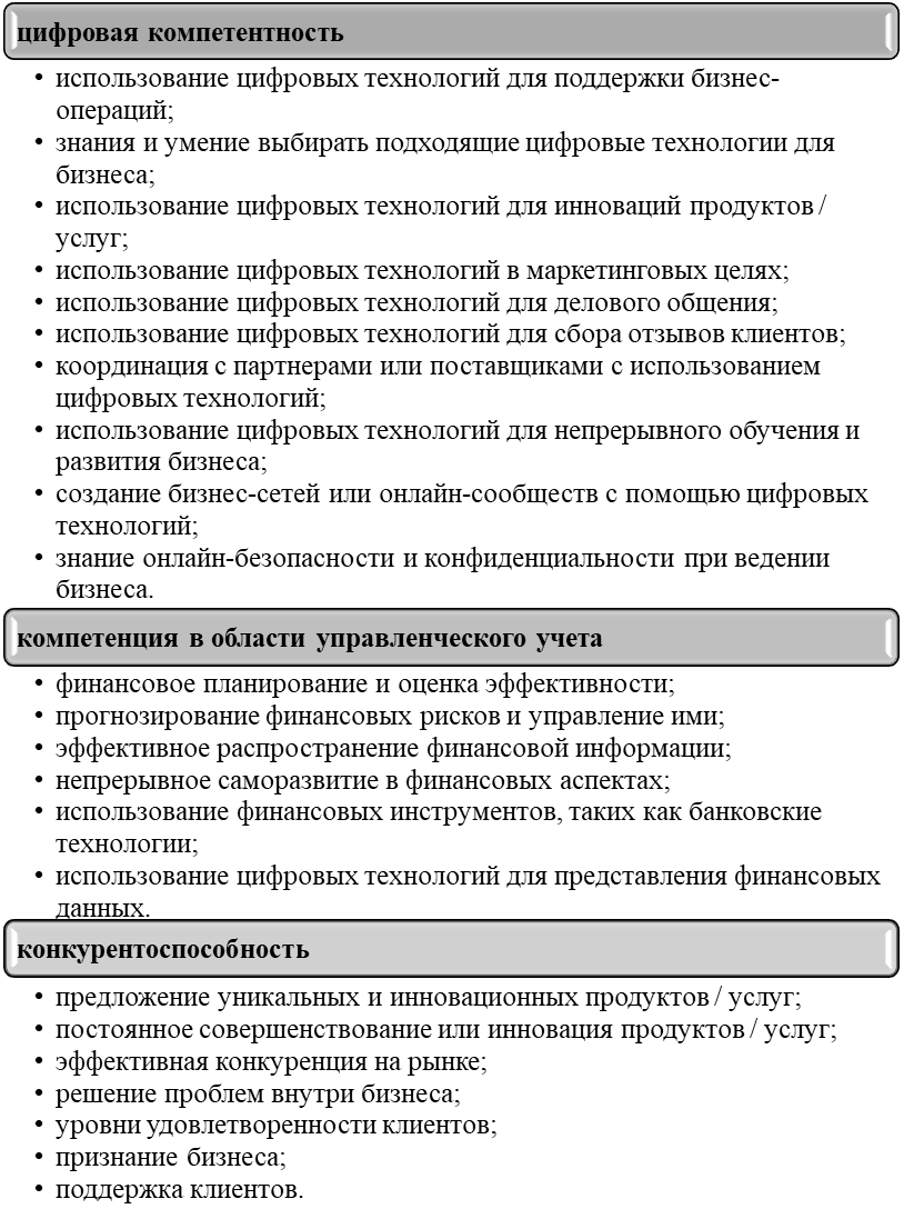 Введение. Цифровая компетентность предполагает мастерство применения цифровых технологий и инструментов в рамках бизнес-операций, при этом ключевым аспектом является управление цифровым учетом, решающим фактором успеха промышленных предприятий. Обладание навыками и знаниями в области управления цифровым бухгалтерским учетом позволяет организациям повышать свою конкурентоспособность, что является важнейшей компетенцией для успеха в ведении предпринимательской деятельности. Таким образом, стратегическое развитие цифровых компетенций и навыков управленческого учета приводит к стабильному улучшению результатов конкурентной деятельности. Однако, в этой области существует пробел в исследованиях, что представляет интерес для изучения влияния цифровых компетенций на возможности управленческого учета и конкурентоспособность российских промышленных организаций.