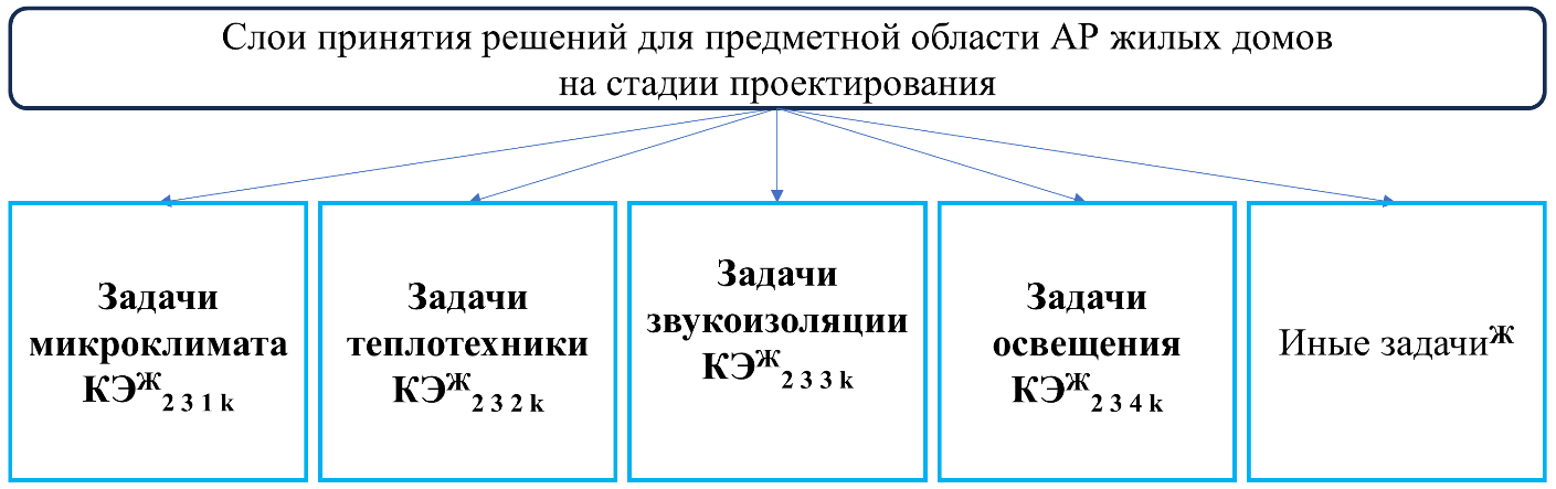 Роль и значение ЛПР в указанных процессах очевидна, так как ЛПР всегда опирается на накопленный опыт и знания предметной области КЭ архитектуры (например, компоновки помещений), строительных конструкций (например, расчетов несущих стен и перекрытий), инженерного оборудования (например, расчетов теплоснабжения) и внешних сетей [6, 7, 14].