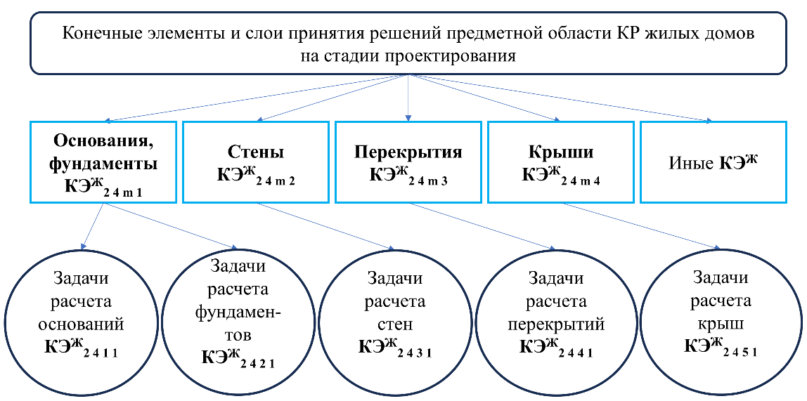 По существу, декомпозиция целостности ОУМЖС на множество автоматизированных технологий и составляющих их иерархических структур данных позволяет выявить все предметные области ОУМЖС для расчетных обоснований предельных состояний КЭ (объектов) архитектуры, строительных конструкций, инженерного оборудования. В данном случае подразумеваются не процессы геометрического информационного моделирования, но процессы расчетных обоснований КЭ для такого моделирования.