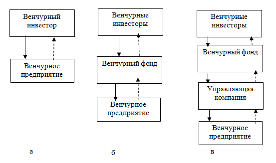 Рисунок 1 – Формы венчурного предпринимательства: а – венчурный проект; б – венчурное финансирование; в – венчурный бизнес [11]