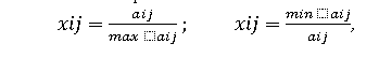 При этом стандартизация несоизмеримых единиц показателей проводится нормированием путем деления значений показателей xijна значения показателей эталонной организации xi,m+1, в зависимости от направленности показателя.