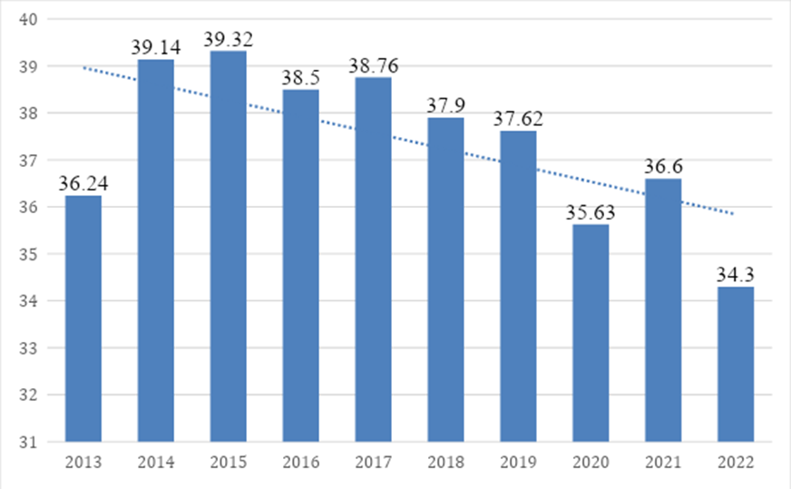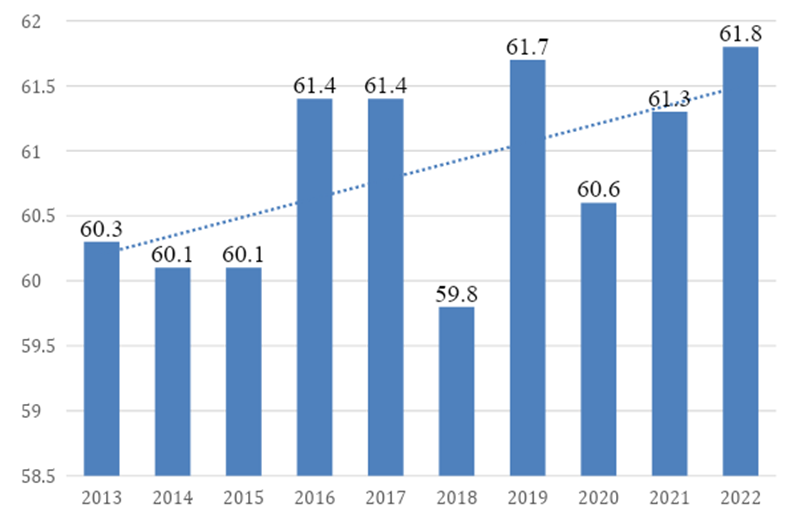 Рисунок 8 – ГИИ России, за период 2013 – 2022 гг., баллы [10]