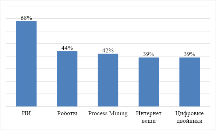 В цифровизации российской экономики основными тенденциями являются облачные технологии, искусственный интеллект и аналитика данных. Многие компании переходят на облачные решения для хранения данных, управления информацией и развертывания приложений. Это позволяет снизить затраты на ИТ-инфраструктуру, повысить гибкость бизнес-процессов и обеспечить доступ к данным из любой точки мира. Также компании все чаще внедряют решения на базе искусственного интеллекта для автоматизации процессов, повышения эффективности работы и принятия обоснованных решений на основе данных (рисунок). Аналитика данных помогает компаниям лучше понимать своих клиентов, оптимизировать продажи и улучшать сервис.
