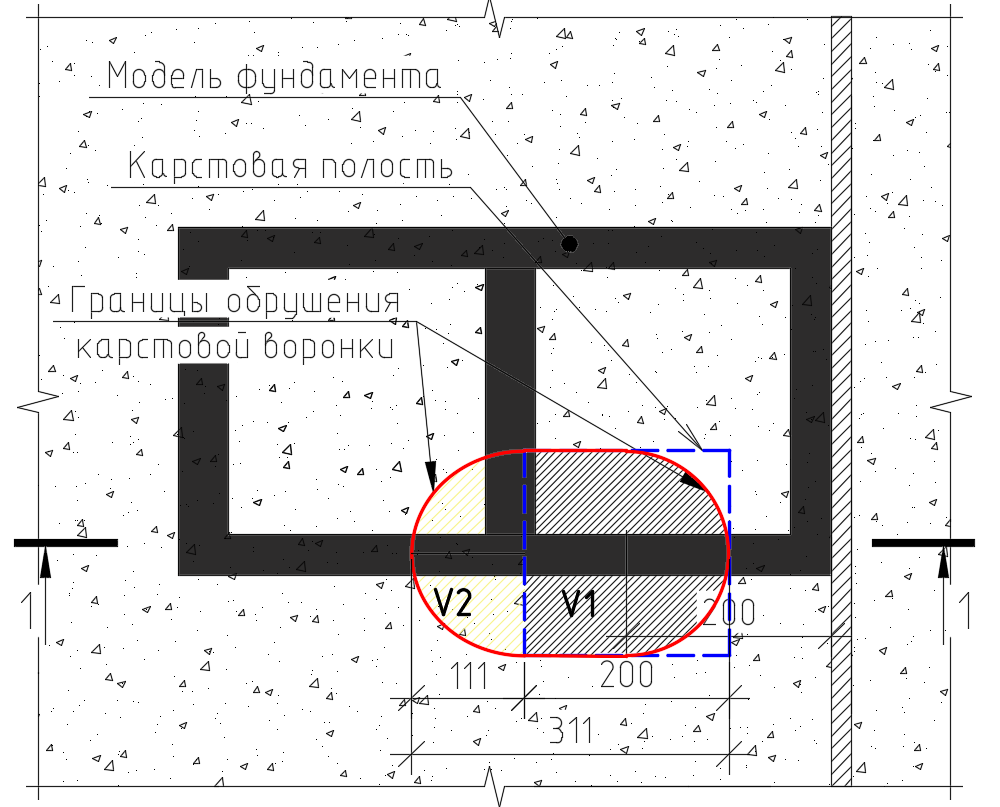 Основная задача таких исследований должна быть направлена на изучение трансформации длины Dk провальной воронки на контакте «основание-фундамент».