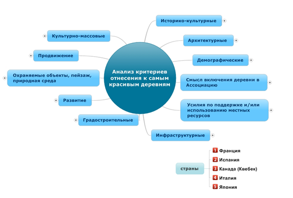Изначально в рамках исследования нами был проведен анализ критериев отбора кандидатов 5 наиболее успешных национальных ассоциаций самых красивых деревень и городков [20], входящих в Федерацию самых красивых деревень и городков (рис.1):