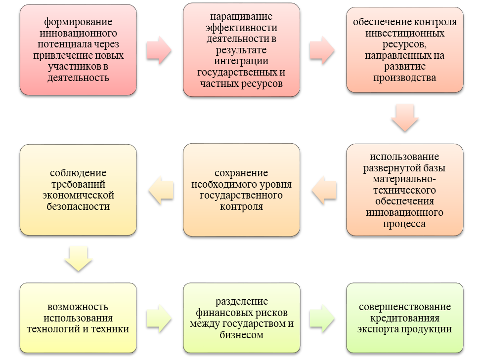 - Образование эффекта синергии от публично-частного партнёрства посредством объединения результатов государственного и частного цикла [3].