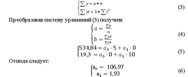 Для нахождения неизвестных коэффициентов математической моделиа0, а1 решим систему уравнений: