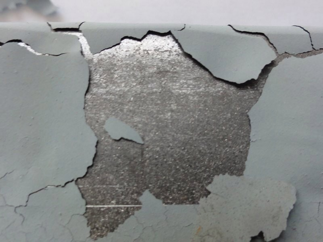 отслаивание происходит, когда краска плохо сцепляется с поверхностью или из-за повреждения защитного слоя;