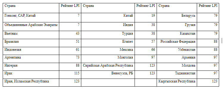 Некачественные логистические услуги, такие как сложное и длительное таможенное оформление; низкое качество транспортной инфраструктуры;  дорогостоящие несистематические перевозки непрямыми длительными маршрутами; разнородность перевозимых грузов; отсутствие систем отслеживания перемещения грузов; отсутствие современной складской инфраструктуры и холодильного оборудования; сложность процедуры сертификации могут стать серьезным препятствием для международной торговли. И именно уровень развития в стране внутренних и международных логистических услуг может стать критическим элементом конкурентной борьбы за экспортные рынки. Одним из критериев оценки логистических компетенций стран является индекс эффективности логистики, рассчитываемый Всемирным банком. Проанализируем данные, используемые в индексе (табл.1).