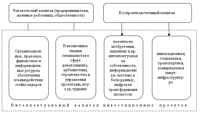 В свою очередь, интеллектуальный капитал, которым обладает регион, должен отражаться в содержании каждого конкретного реализуемого инвестиционного проекта. И наоборот: интеллектуальный капитал, образующийся в результате реализации инвестиционного проекта, должен стать частью интеллектуального капитала региона.