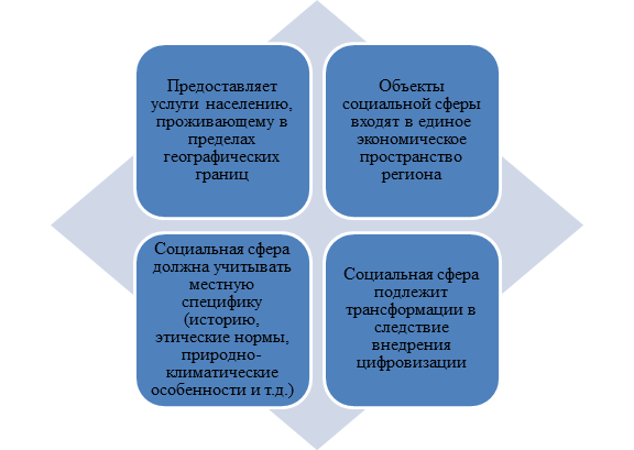 Следует отметить, что применяемые инструменты в региональной экономической политике, ориентированные на управленческое воздействие социальных инвариант, на наш взгляд, должны опираться на их обоснованность и реальность проведения качественных трансформаций, приводящих к улучшению качества и жизни граждан. Причем, для социальной сферы характерна ее специфичность, которая проявляется через многоаспектные качественные метрики и особое значение при формировании векторов регионального развития (рис.1), что также требует особого внимания [3].