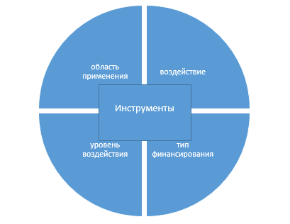 - Экологические инструменты: меры по охране окружающей среды, развитию «зелёной» экономики.