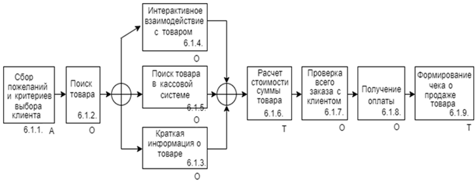 Рис. 1. Организационно-логические и временные связи подпроцесса «Продажа товара»