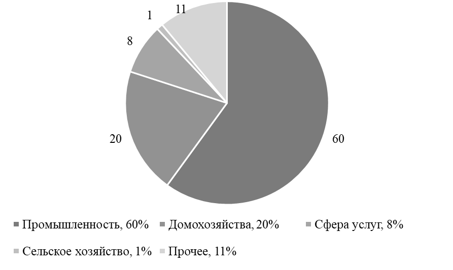 Рис. 3. Структура потребления электроэнергии сферами национального хозяйства Республики Камерун (в среднем с 2020 по 2024 гг.), %