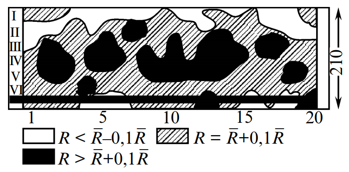 Рис. 1. Распределение прочности бетона в балке: