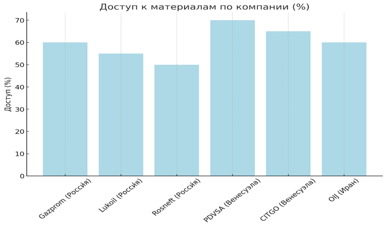 Доступ к ресурсам по компаниям (%): показывает процент доступа к критически важным ресурсам для каждой компании. Этот процент выше для компаний с более строгими правилами.