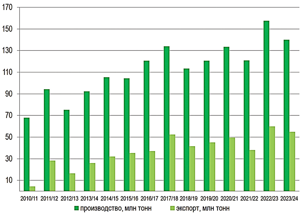 В сельскохозяйственном сезоне 2023–2024 (с 1 июля 2023 по 30 июня 2024 года) |
