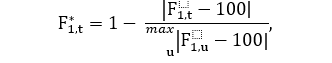 Для целевого показателя выполнения прогноза по доходам F1используется «близость к 100 %»: