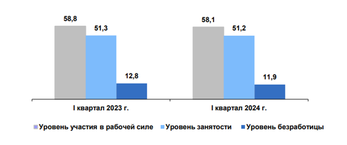 Рис. 1. Показатели рабочий силы Республики Дагестан, %