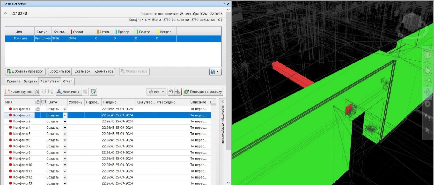 Рис. 10. Проверка модели воздуховодов на коллизии