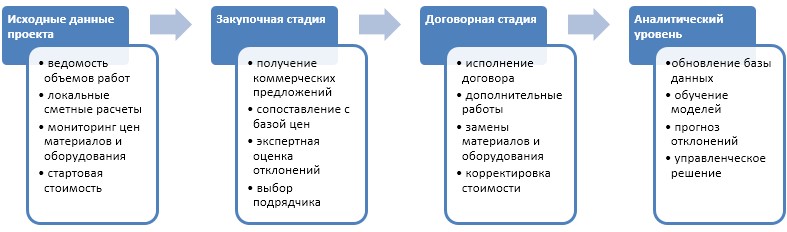 Такой подход позволяет перейти от локальной сметной ошибки к комплексному представлению о стоимостном риске как результате взаимодействия среды, процессов и моделей [9-10]. Следовательно, система прогнозирования стоимости должна объединять данные о рынке, состоянии проекта, истории реализации и параметрах объекта в единой цифровой среде.