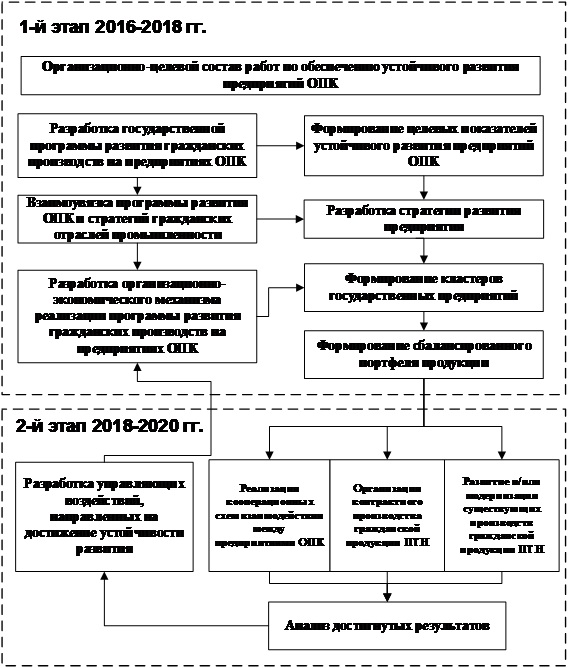 Рис. 1. Организационно-целевой состав работ по обеспечению устойчивого развития предприятий ОПК