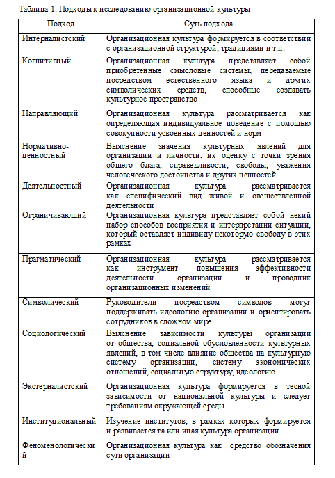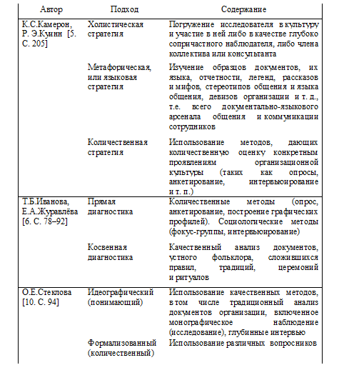 Таблица 3. Подходы к диагностике организационной культуры
