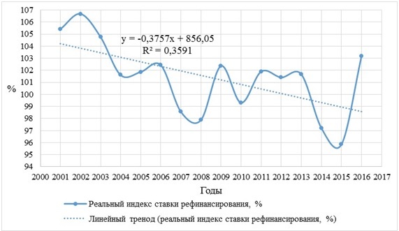 Для создания благоприятных условий инвестирования рентабельность предприятий и инвестиционных вложений должна быть выше процентных ставок по кредитам и депозитам, которые должны быть выше уровня инфляции. В настоящее время в экономике России с точки зрения соотношения уровня рентабельности инвестиционных проектов или рентабельности бизнеса с уровнем процентных ставок можно наблюдать крайне неблагоприятную картину. В 2015 г. рентабельность проданных товаров и услуг в среднем по Российской Федерации составляла 8,1% [9]. Кредиты нефинансовым организациям на срок свыше года предоставлялись по ставке 15,7%. Депозиты у нефинансовых предприятий принимались банками по ставке 11,8% [10]. Индекс-дефлятор в 2015 г. составлял 108,2%, а индекс потребительских цен - 112,9% [9]. Рентабельность предприятий значительно ниже средневзвешенного уровня процентных ставок и ниже уровня инфляции, а в таких условиях вкладывать денежные средства в инвестирование промышленного производства не выгодно. Выходом может быть снижение ставок банковского процента вследствие реформирования инструмента рефинансирования.
