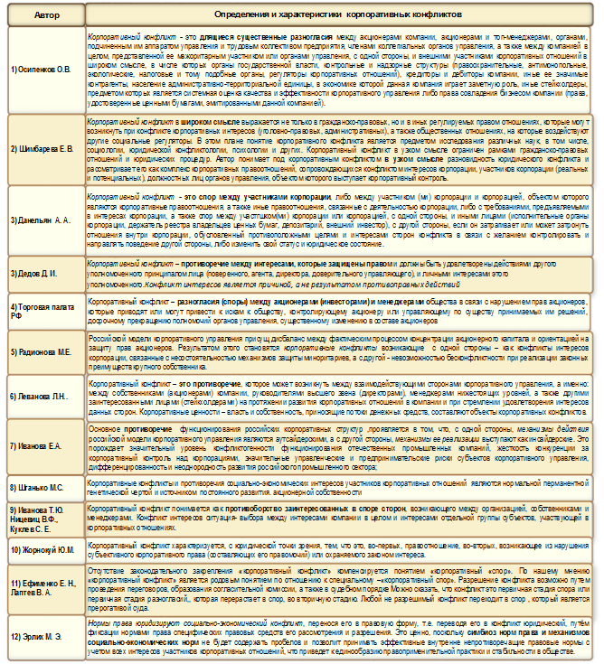 Рисунок3 – Определения и характеристики корпоративных конфликтов