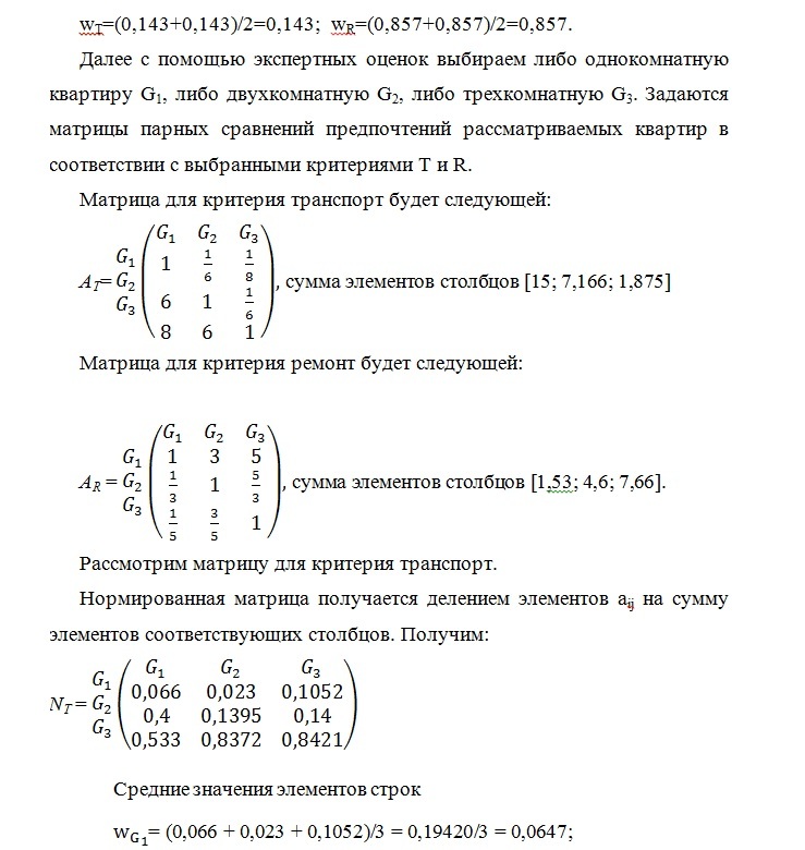 Выбор наилучшей альтернативы происходит следующим образом. Вычисляются комбинированные весовые коэффициенты для каждого варианта квартир.