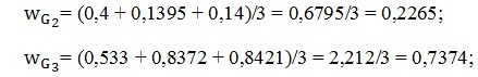 Как было вычислено ранее, веса критериев следующие:
