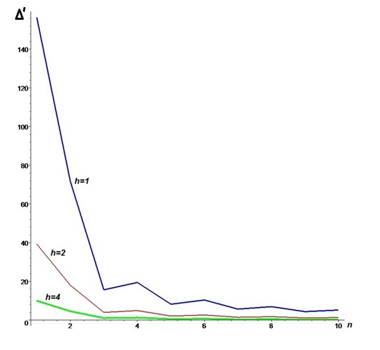 — длины стержней, EF — жесткость стержней (принята одинаковой для всех стержней). Принимается четное число панелей n=2k. Суммирование ведется по всем стержням, кроме опорных. В процессе счета было замечено, что при k=2,5,8... определитель системы уравнений равновесия обращается в ноль. Для того, чтобы исключить эти значения из метода индукции для параметра k выбирается закон изменения