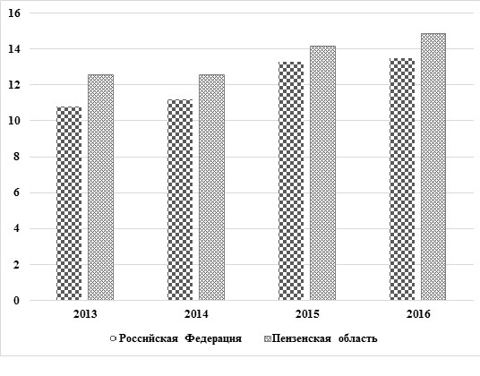 Если рассматривать численность населения с денежными доходами ниже величины прожиточного минимума, то по Пензенской области данный показатель, к сожалению, выше общероссийского (рисунок 3).