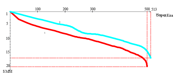 На начальном этапе нагружения (до давления σ = 250 кПа) графики осадок близки к линейному (рис. 1). Нелинейная стадия графиков осадок начинается при σ> 250 кПа , причем нелинейность возрастает при росте нагрузки вплоть до потери устойчивости основания.