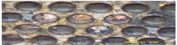 Рис.4. Состояние конденсатора пара через 2 месяца работы до запуска Акваклер (увеличено)