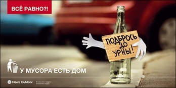 Если же целью является получить ситуацию II, описанную в таблице 1, то есть требуется изменить поведение потребителей, то упор в рекламе будет сделан на призыв к действию (см. рис. 3). На рисунке 3 представлен макет рекламных материалов в рамках социального проекта «Все Равно?!», проводимого компанией News Outdoor и Группой АДВ и посвященного проблемам экологии [8].