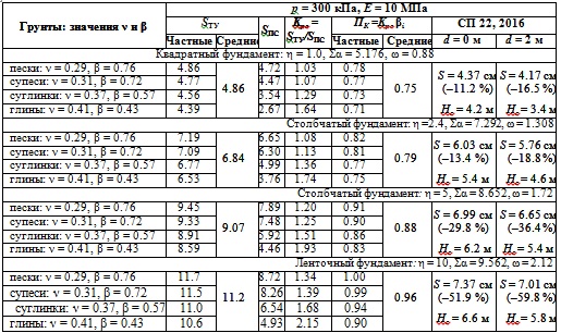 где значения βi были 0.43, 0.57, 0.72 и 0.76 – соответственно для глин, суглинков, супесей и песков в зависимости от коэффициента νi (позднее в ГОСТе 12248-2010 приняты близкие значения – βi = 0.4, 0.6, 0.7 и 0.8).
