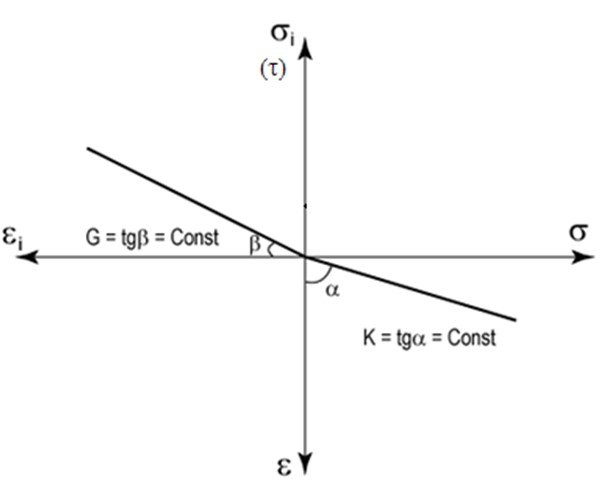 Рис.1. Линейное деформирование конструкционных материалов (K = const, G = const)