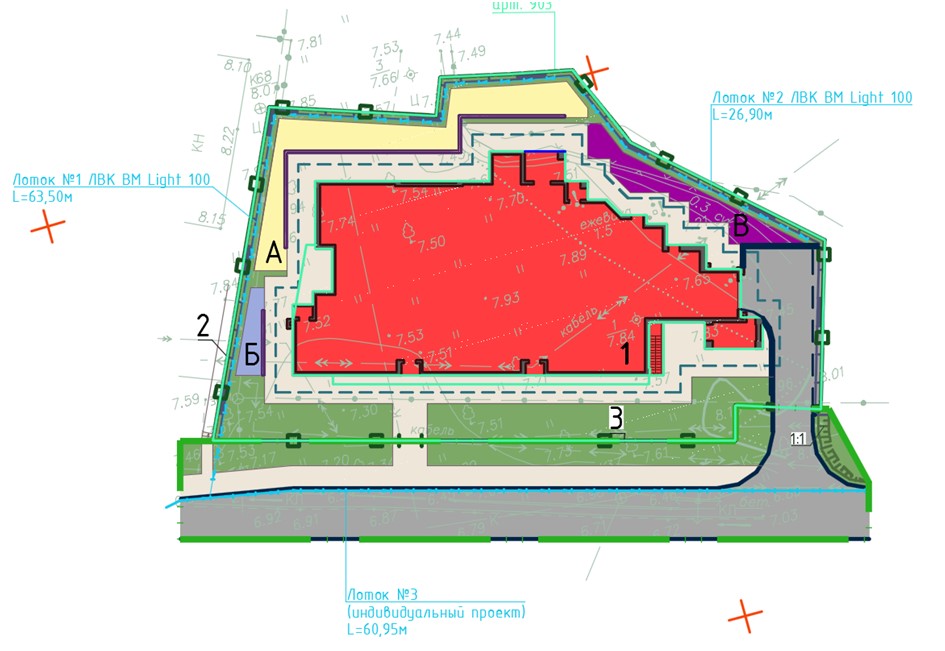 На рисунке 13 показан разработанный план организации земельного участка многоквартирного жилого дома с подземной парковкой с учетом градостроительных норм [4].