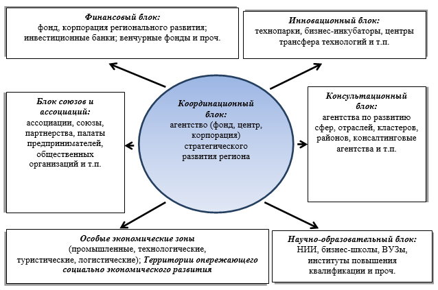 1. Координационный блок: агентство (центр, фонд, корпорация) стратегического о развития региона |