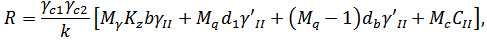 – удельное сцепление грунта, залегающего непосредственно под подошвой фундамента.
