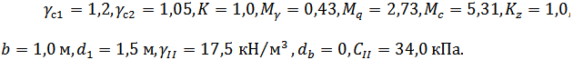 Определим расчётное сопротивление грунта в соответствии со СНиП [6].