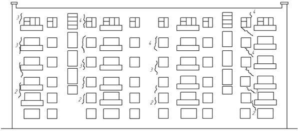 Дом 48 деформируется несколько меньше дома 49. Наибольшее количество трещин расположено на стене дворового фасада здания. Остальные стены имеют трещины с шириной раскрытия 2-3 мм на отдельных участках стен. Трещины стены дворового фасада (рис 5) проходят в основном по швам кладки, имеют ширину раскрытия до 4 мм, расположены большей частью, вертикально и только в восточной стороне стены имеются наклонные трещины. Вид трещин, их расположение, прохождение по швам кладки говорит о достаточно хорошем состоянии кладки, с незначительным снижением её прочности.