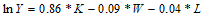 Учитывая, что рентабельность продаж (W), оборачиваемость активов (L) и мультипликатор собственного капитала (K) являются факторами рентабельности собственного капитала (Y) построим модель зависимость данного показателя от указанных факторов по типу производственной функции Кобба-Дугласа.
