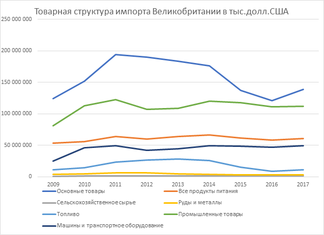 Рисунок 9. – Товарная структура импорта товаров Великобритании в 2009-2017 гг., тыс.долл.США.