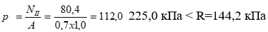 Проверка напряжений под подошвой фундамента [7] производится на действие нормативных нагрузок – (табл. 1).