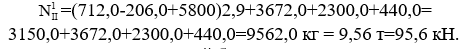 NII=712,0 х 2,9 х + 3672,0 + 2300,0 = 2065,0 + 3672,0 + 2300,0 = 8037,0 кг = 80,4 кН.